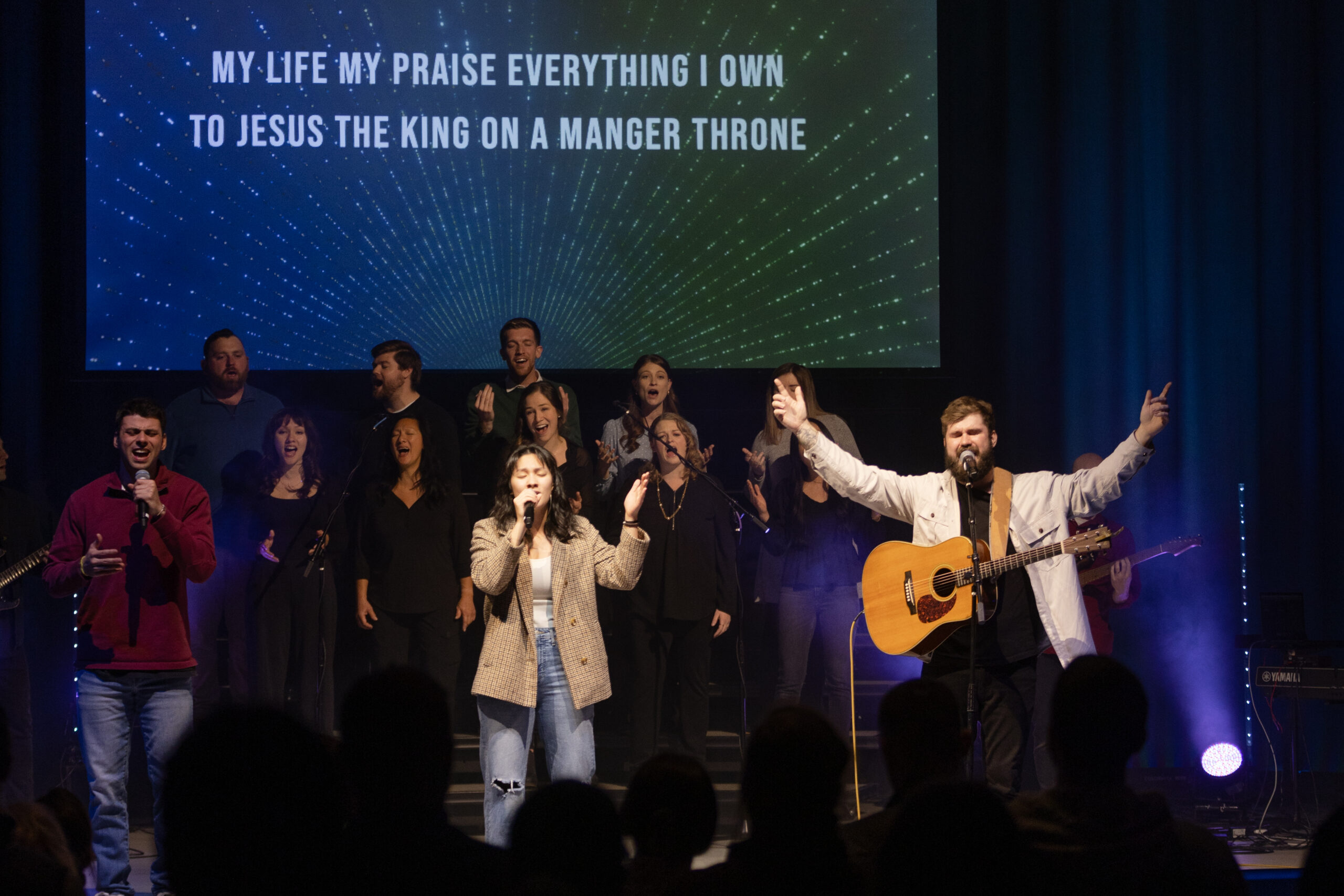 We try and start our services right on time – and each service lasts about 70 minutes. We’ll sing some songs, tell a story about what God is doing in or through our church, and someone from our teaching team will give a message from the Bible.